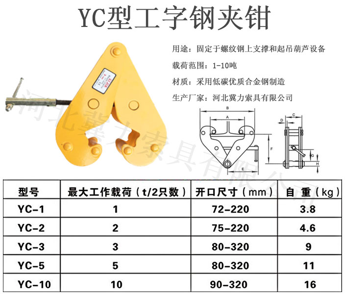 YC型工字鋼夾鉗: